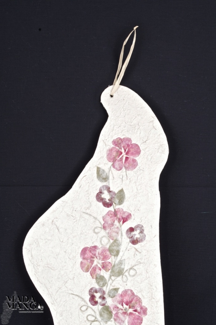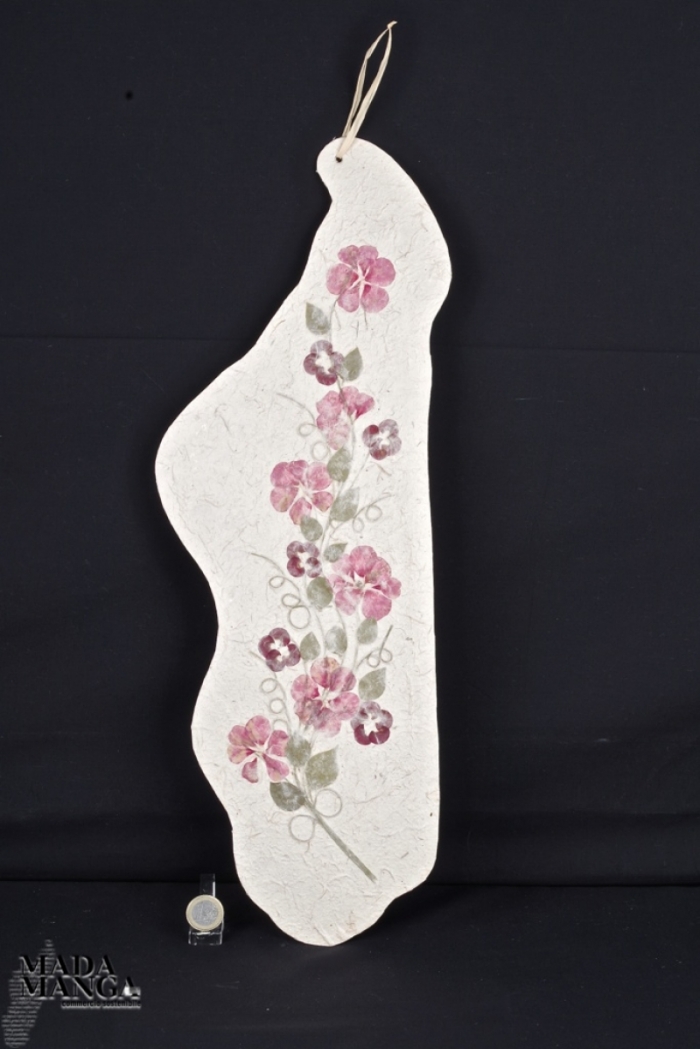 Sagoma a forma di Madagascar con decorazione floreale. Completamente realizzata a mano con fiori essiccati. Dimensioni 17x50 CM altezza.