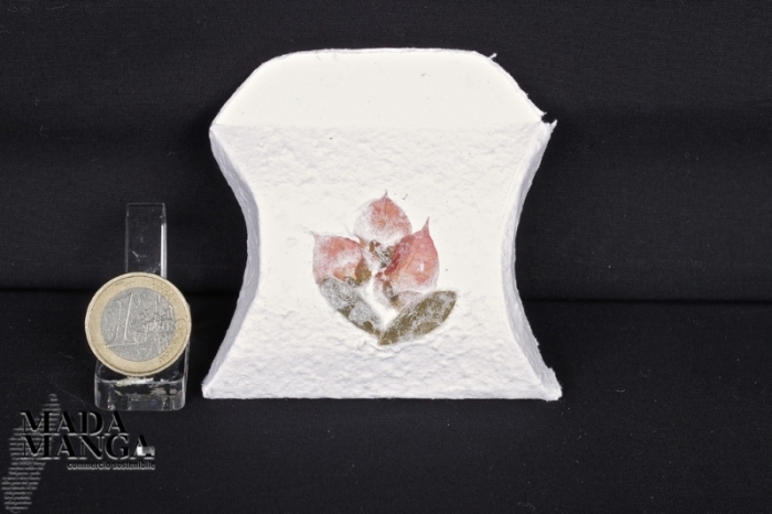 Scatolina pieghevole in carta antaimoro con decoro floreale, adatta anche per bomboniera cm.8x8x2,5 sp.