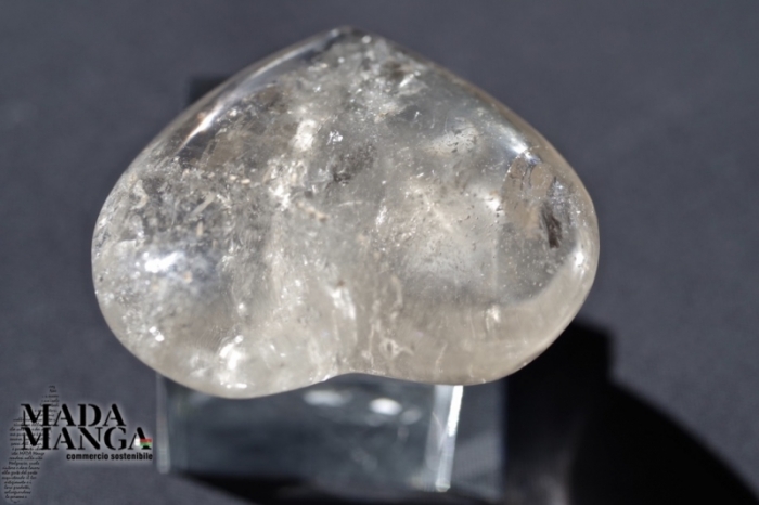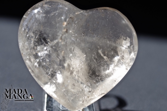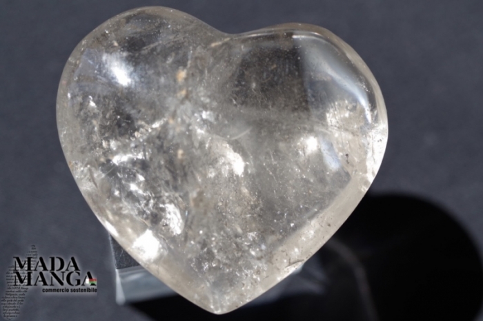 Cuore in Quarzo leggermente fumè con bella trasparenza, realizzato a mano, dimensioni mm.49x45.