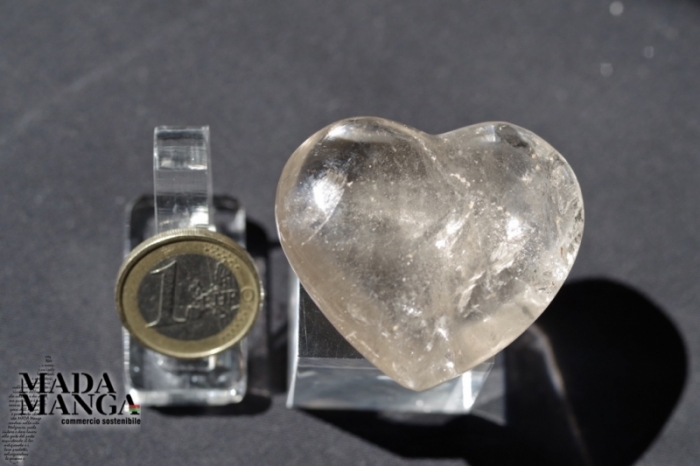 Cuore in quarzo leggermente fumè dalla bella trasparenza. dimensioni 4,9x4,5x1,7 cm. sp. Peso 46 grammi