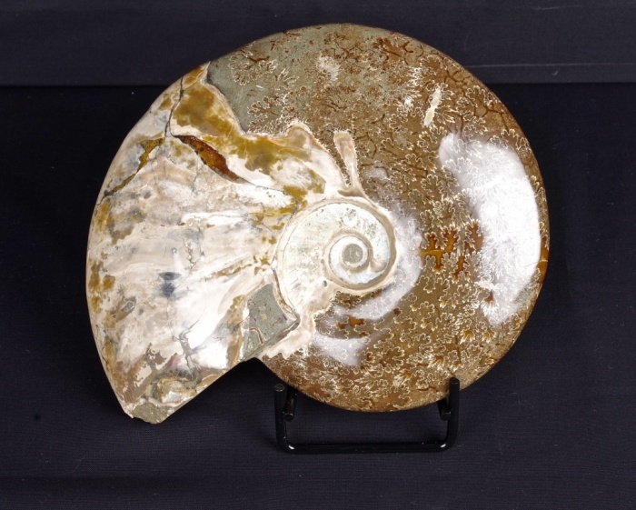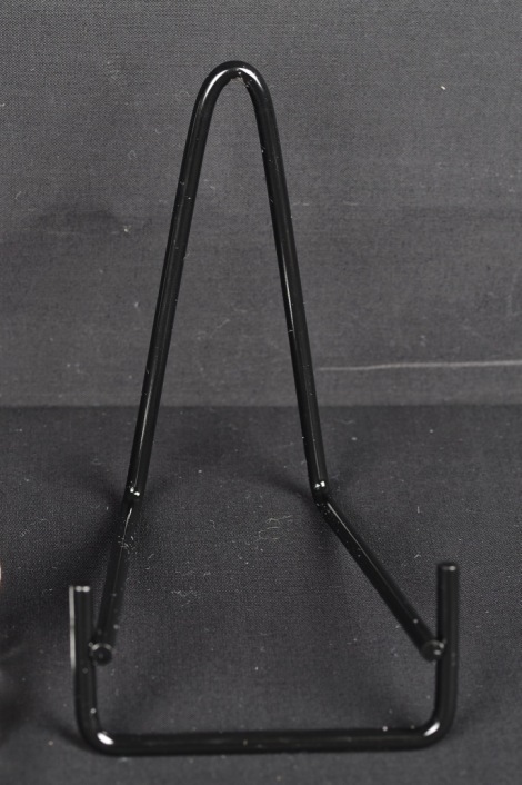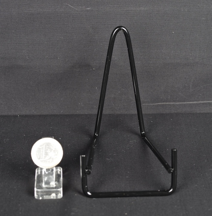 Supporto in metallo verniciato nero per fette legno fossile e ammoniti. Dimensioni cm.9,1x7x10,3H. Adatto per fette, ammoniti od oggetti sui 10/13 cm.