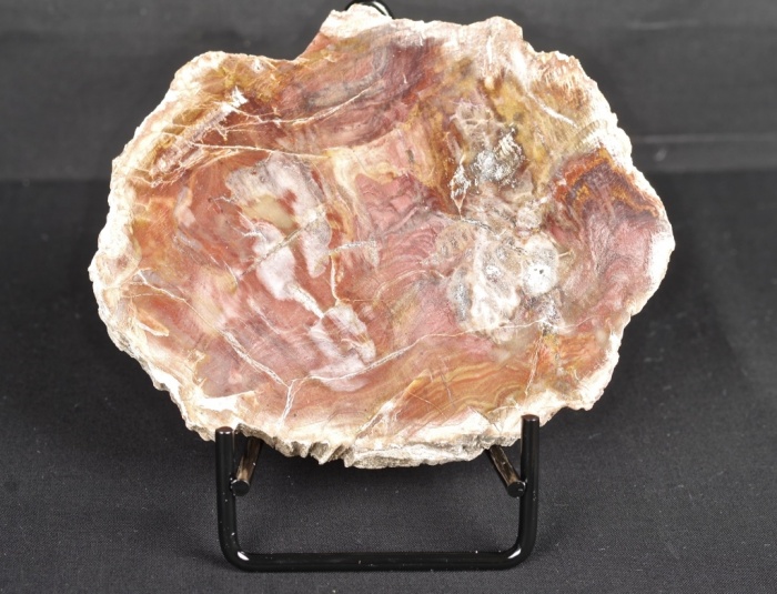 Supporto in metallo verniciato nero adatto per fette di legno fossile e di minerali e per ammoniti.