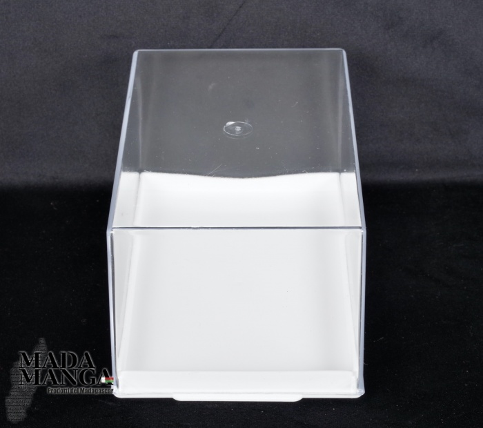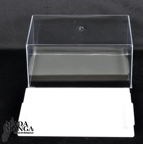 Scatola in plastica trasparente con base bianca per minerali e fossili. Dimensioni esterne cm.13,2x8,2x6,6H