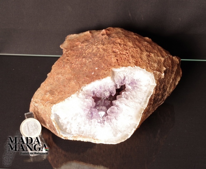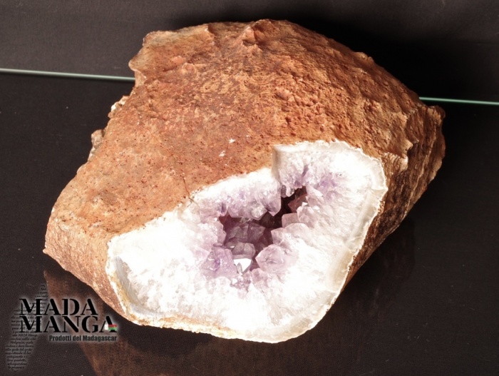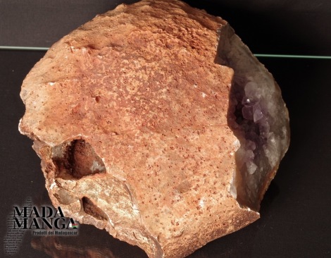 Geode di Ametista con cristalli grandi e di un bel viola intenso, matrice con Agata grezza, provenienza Madagascar, dimensioni cm.20x19x10. Peso 1927 grammi.