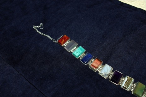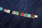 Braccialetto in argento con pietre dure miste (Diaspro rosso, Amazzonite, Diaspro Oceanico, Agata, Corniola, Quarzo Rosa) lung cm.17,5.