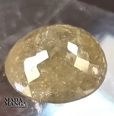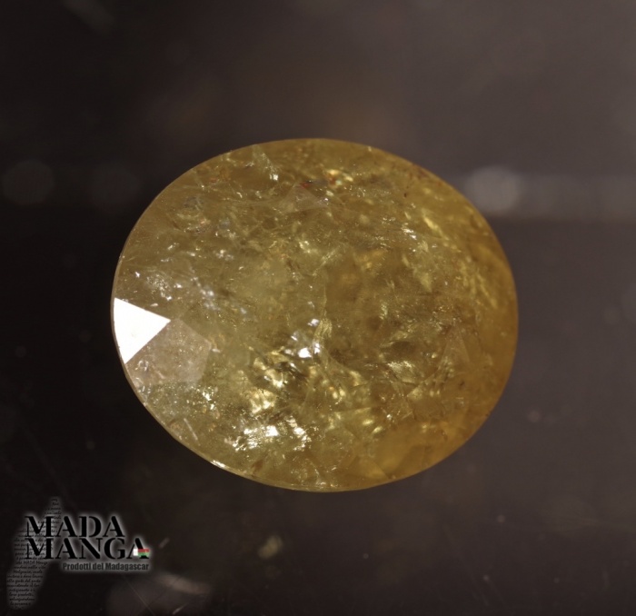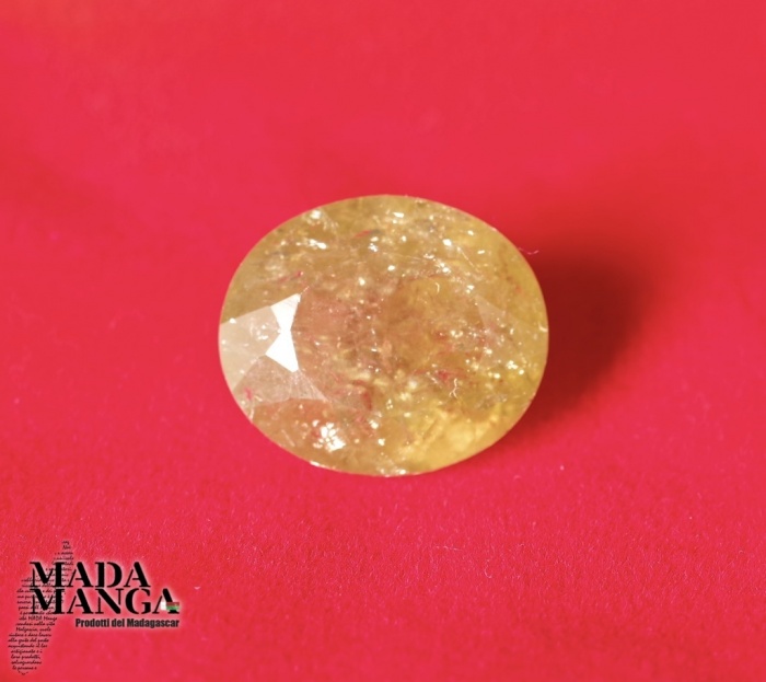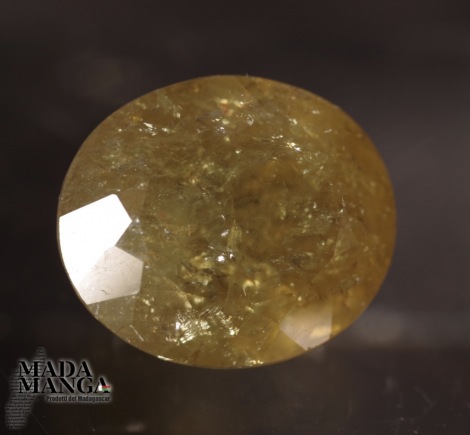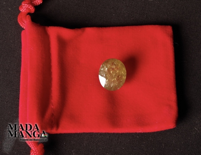 Demantoide Verde (varietà verde Andranite, famiglia dei Granati), colore verde/giallo, con inclusioni, ct.12,71. Dimensioni mm.14x12x5. Provenienza Madagascar.