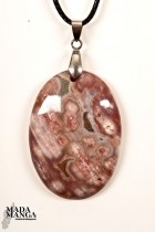 Ciondolo in Diaspro Oceanico (o Orbicolare) di forma ovale, dimensioni mm.30x45, venduto con laccetto in corda cerata.