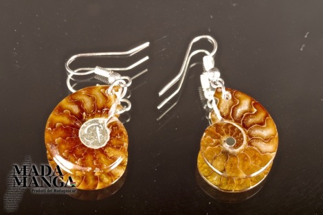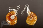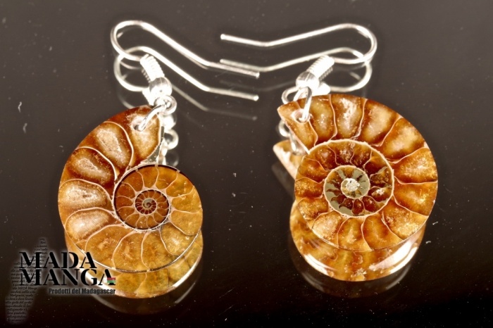 Orecchini con coppia di ammoniti naturali tagliate e lucidate, diametro mm.23.