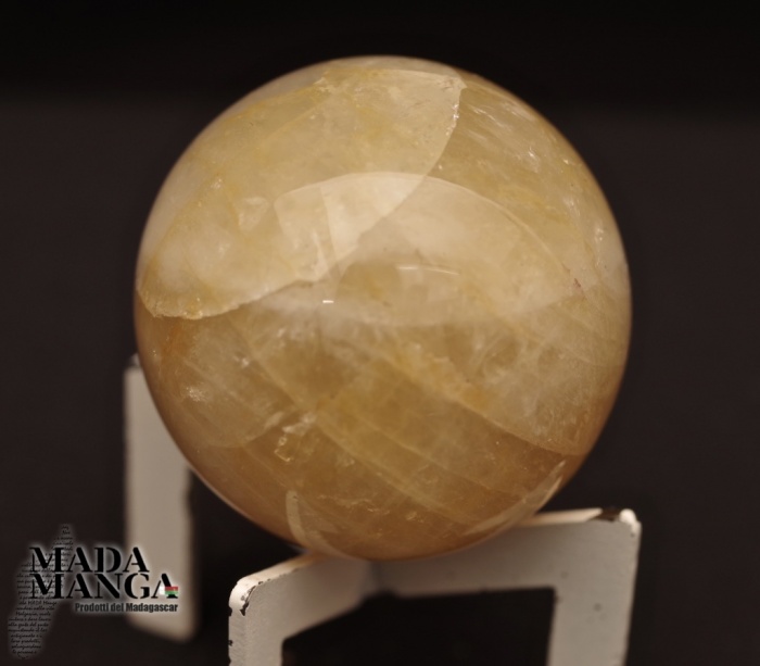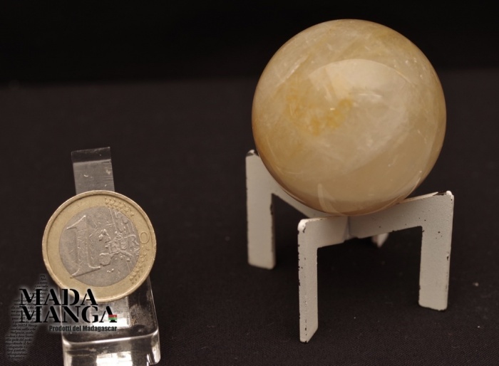 Sfera in calcite gialla, provenienza Madagascar, diametro cm.4, peso 93 grammi.
