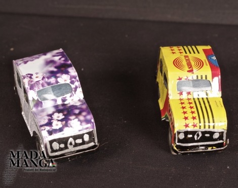 Modellino Renault 6 in Latta Riciclata, ruote girevoli, realizzato a mano, dimensioni cm.7,8x3,5x4,2H. Il modello che inviamo potrebbe non essere, come colori, uno di quelli in fotografia. Non sono da utilizzare come giochi per bambini in quanto non sono omologati CE come giochi.