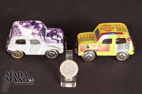 Modellino Renault 6 in Latta Riciclata, ruote girevoli, realizzato a mano, dimensioni cm.7,8x3,5x4,2H.