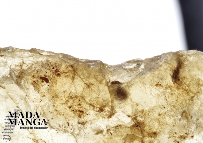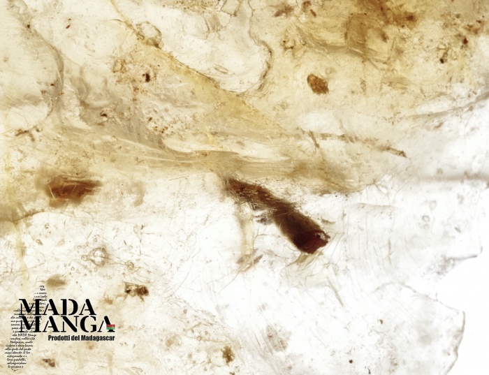 Pezzo di Ambra Copale grezza del Madagascar con piccoli inclusioni di insetti, dimensioni mm.35x52x8sp, peso 6,3 grammi.