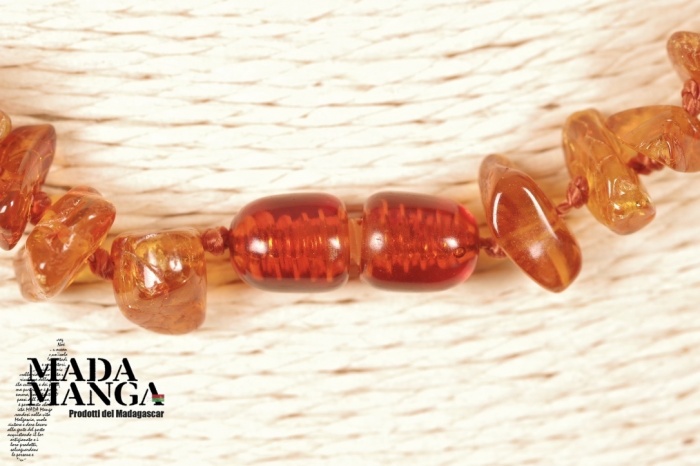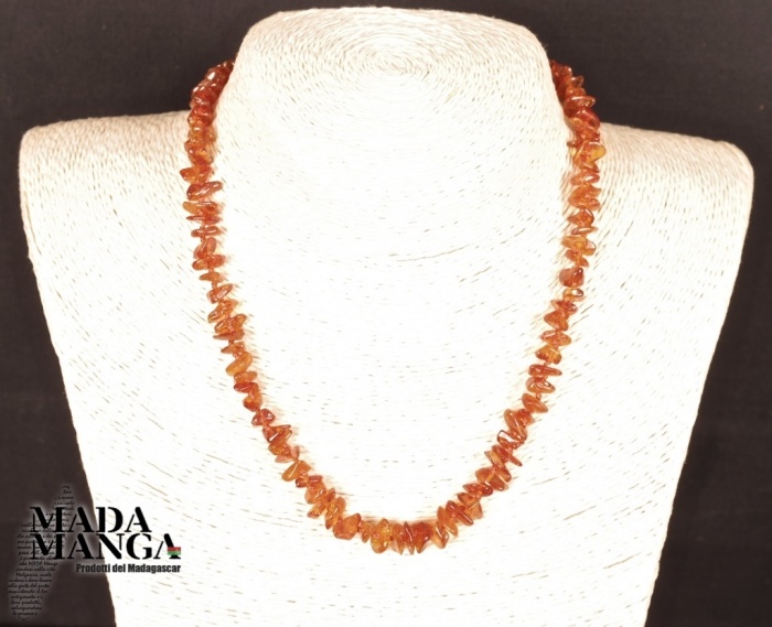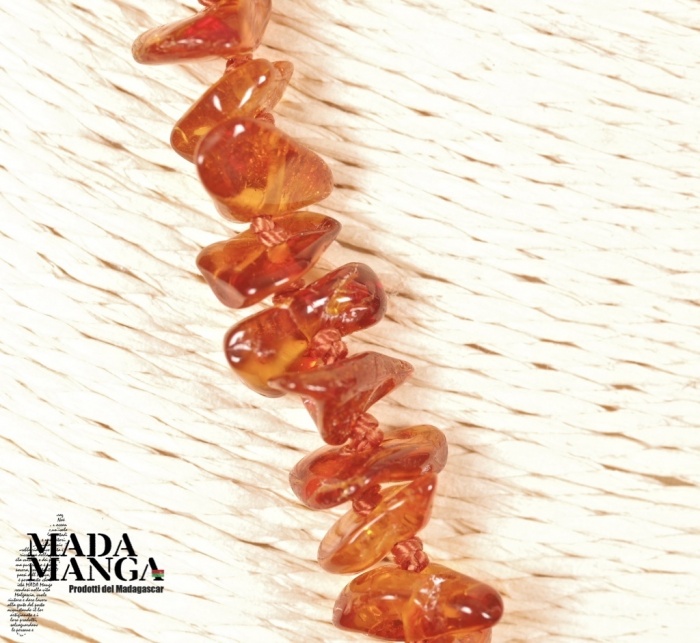 Collana realizzata con Ambra (fossile), lunghezza cm.44, peso 10,7 grammi. Fermaglio con chiusura a vite. La confezione regalo consiste in sacchetto in tulle e scatolina in carta antemoro.