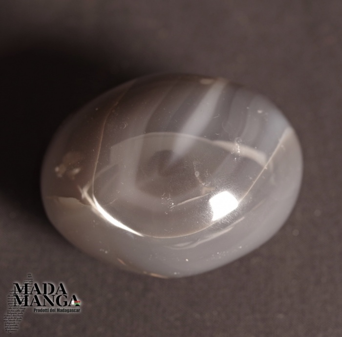 Forma Libera in Agata di colore grigio scuro, provenienza Madagascar, dimensioni cm.6,3x5,2x4,7, peso 206 grammi.