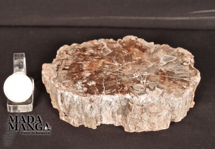 Tronchetto di Legno Fossile del Madagascar con varie tonalità di colore marrone, dimensioni cm.12,3x8,5x3H, peso 520 grammi.