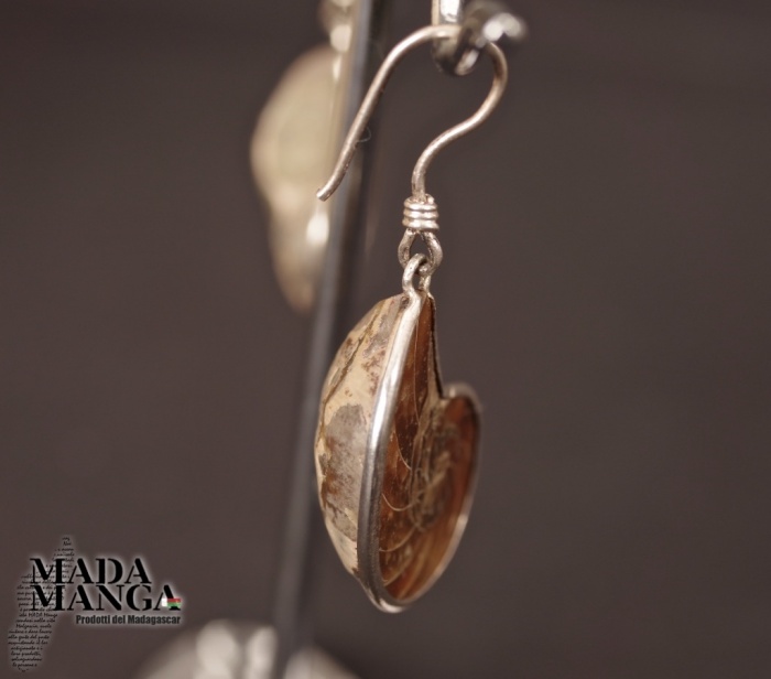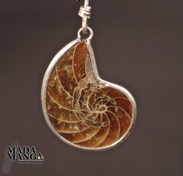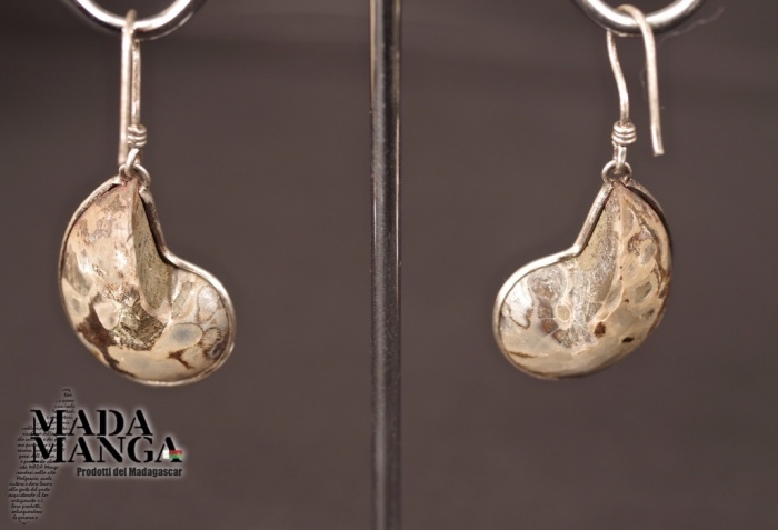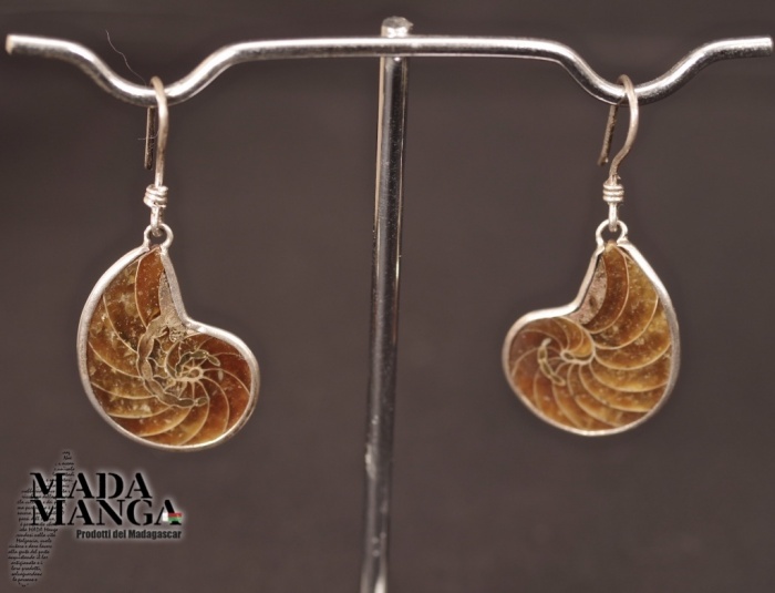 Orecchini con coppia di Nautilus fossile naturale tagliato e lucidato, dimensioni mm.2x2,7H.
