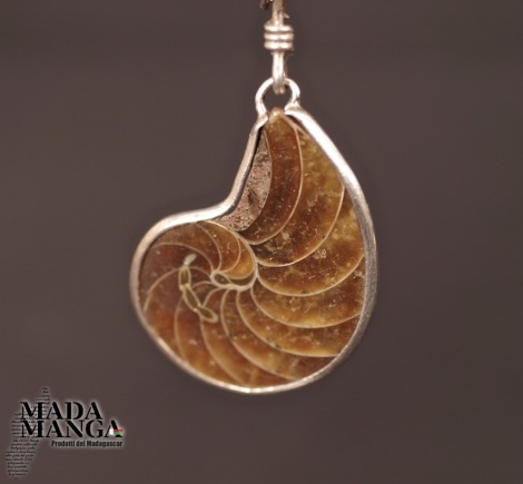 Orecchini con coppia di Nautilus fossile naturale tagliato e lucidato, dimensioni mm.2x2,7H. Peso complessivo 11,1 grammi. La confezione regalo è composta da sacchetto in tulle e scatolina in carta antemoro.