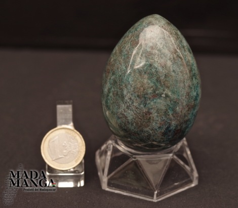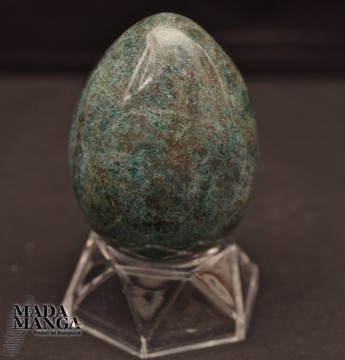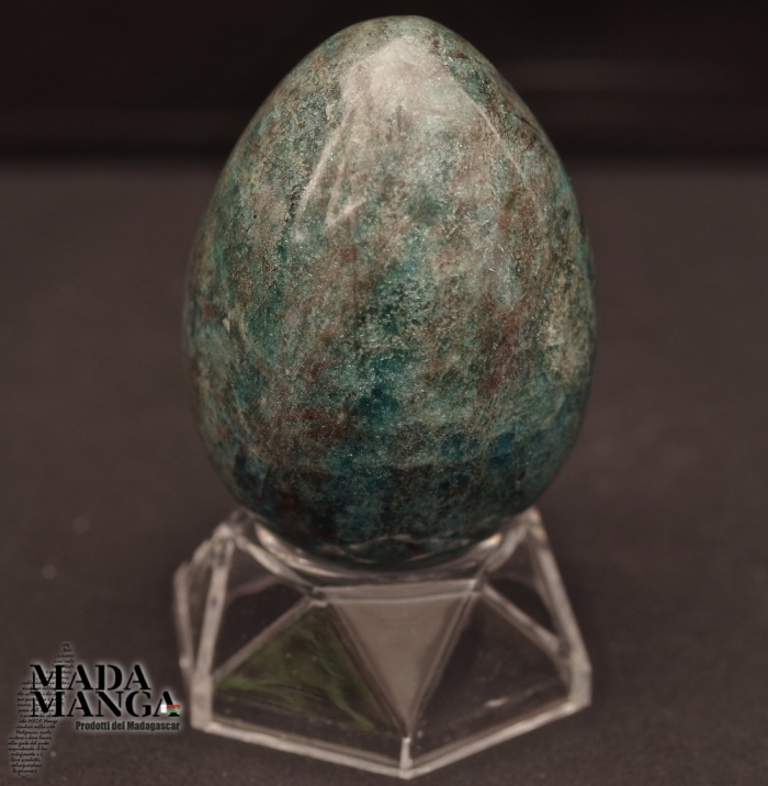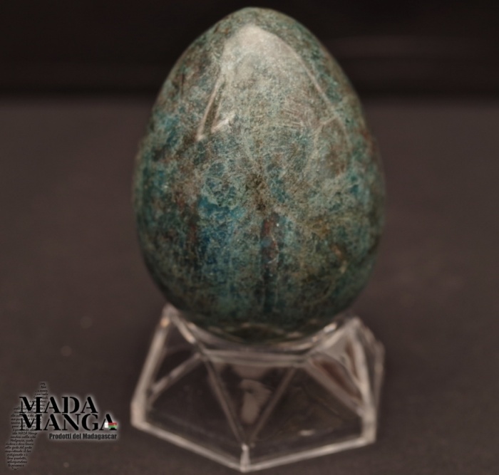 Uovo in Apatite blu, realizzato a mano, dimensioni cm.5,2x7,3H. Provenienza Madagascar.