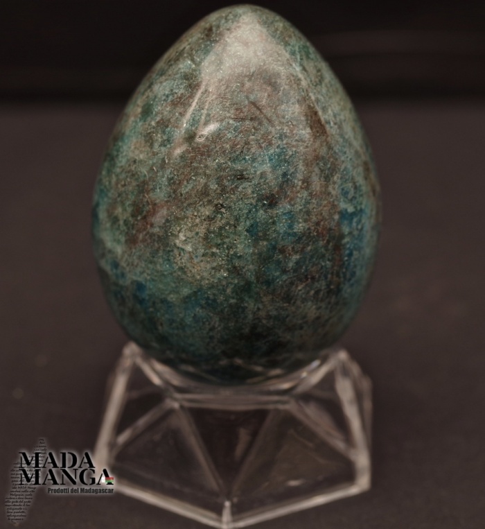 Uovo in Apatite blu, realizzato a mano, dimensioni cm.5,2x7,3H. Peso 283 grammi. Provenienza Madagascar.