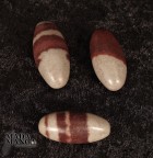 Shiva Lingam con dimensione media di cm.1,2/1,4x 2,8/3 circa e peso dagli 10 ai 13 grammi circa. Provenienza India. E' una miscela di agata/basalto e diaspro in quarzo.