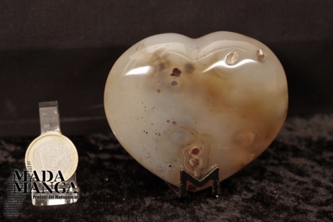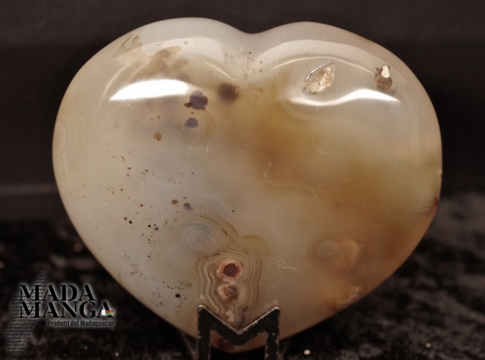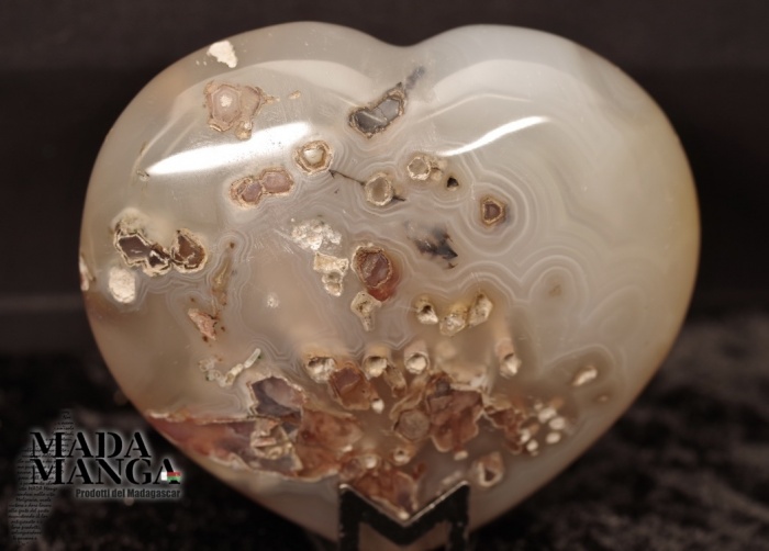 Cuore in Agata Sakura (fiori di ciliegio) realizzato a mano, dimensioni cm.8,1x7,3x3 spessore, realizzato a mano, dimensioni cm.8,1x7,3x3 spessore. Peso 228,8 grammi, provenienza Madagascar.