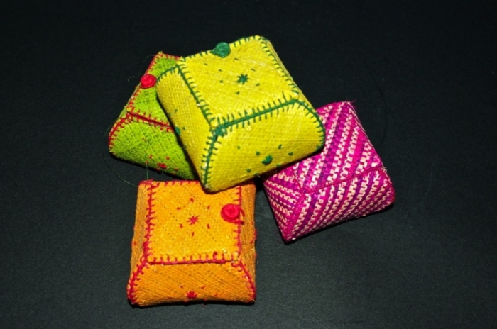 cofanetto in rafia in colori assortiti, interamente realizzato a mano, dimensioni cm.6x6