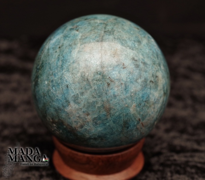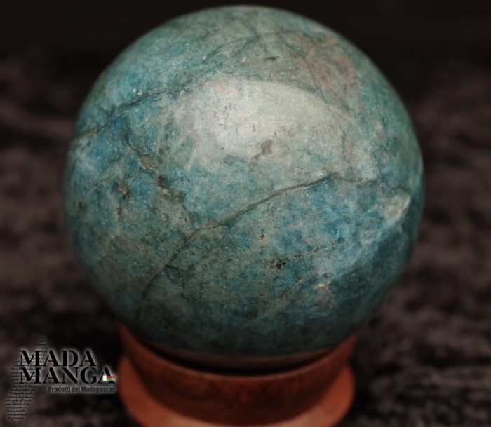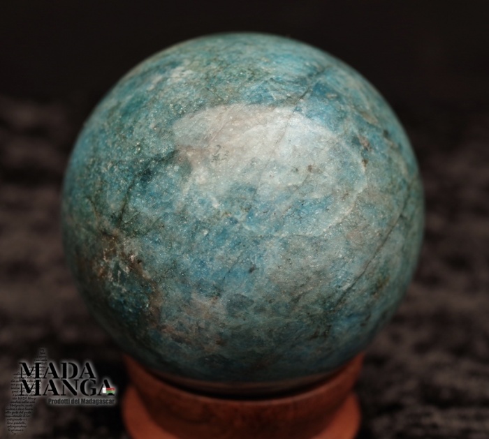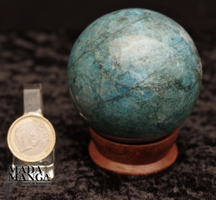 Sfera in Apatite Blu di colore intenso, lavorata e lucidata a mano, diametro cm.6,5 mesi 446 grammi. Provenienza Madagascar.