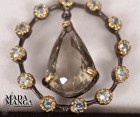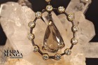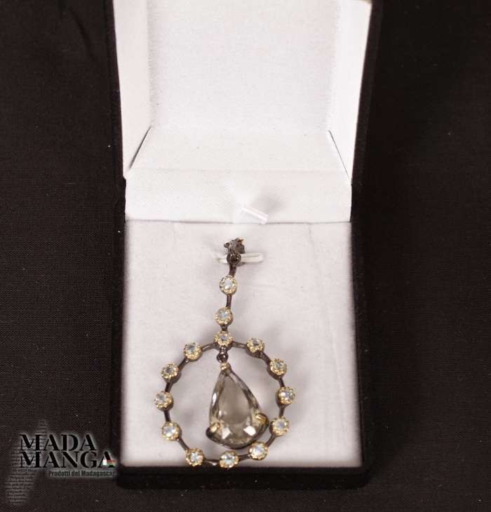 Ciondolo in Argento 925 rodiato con rodio nero e placcature in oro giallo, con Ametista verde (Prasiolite) da mm.13x21 e piccoli topazi.