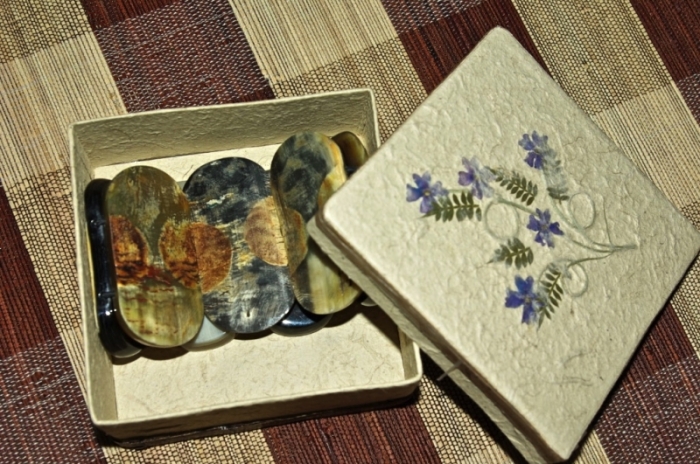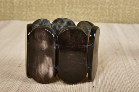 bracciale elastico in corno reversibile (lato lucido e lato lavorato grezzo),diametro bracciale 6 cm altezza cm 6,interamente fatto a mano