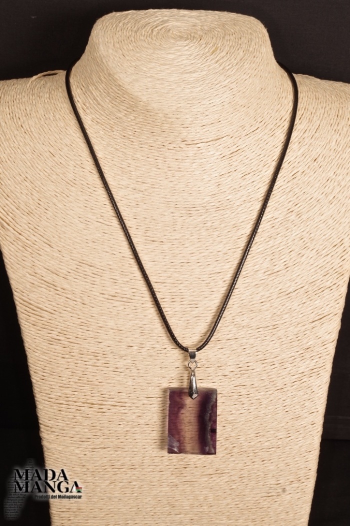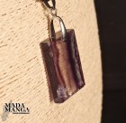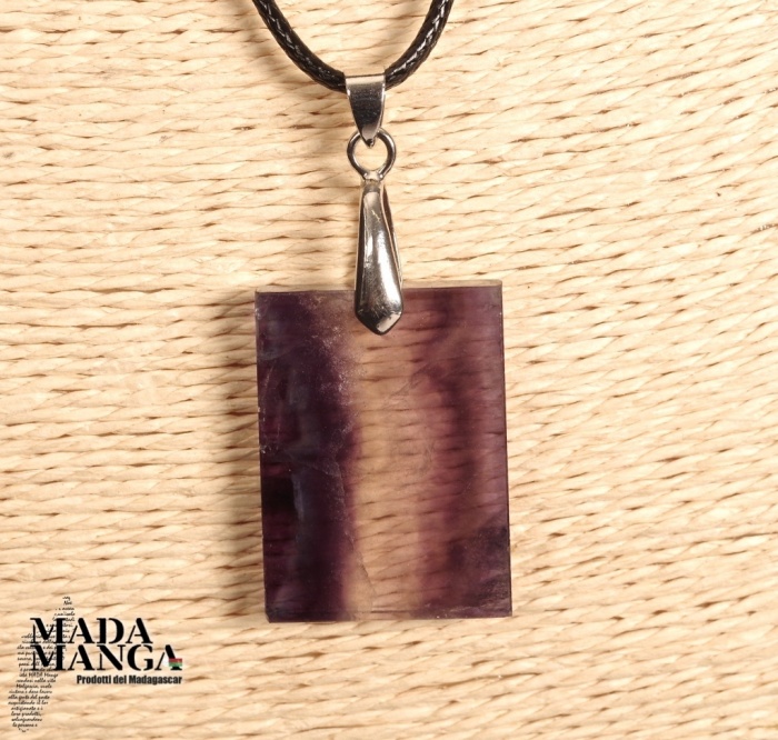Ciondolo rettangolare in Fluorite policroma, dimensioni mm.23x32x5sp., fornito con laccetto in corda cerata.