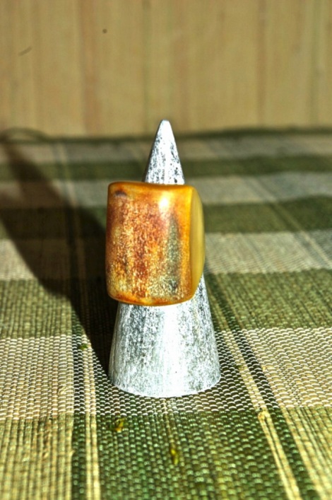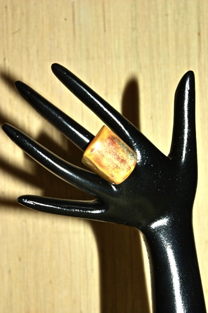anello in corno di zebù colore chiaro lavorato lucido e con lavorazione effetto grezzo,interamente realizzato a mano,dimensione frontale anello 3x2,5 cm
