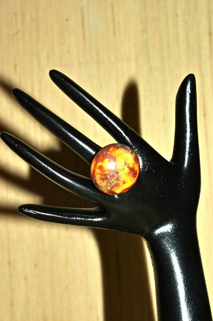 anello in corno di zebù chiaro con in parte lucido e in parte con lavorazione effetto grezzo,interamente realizzato a mano,dimensione frontale anello 3 cm
