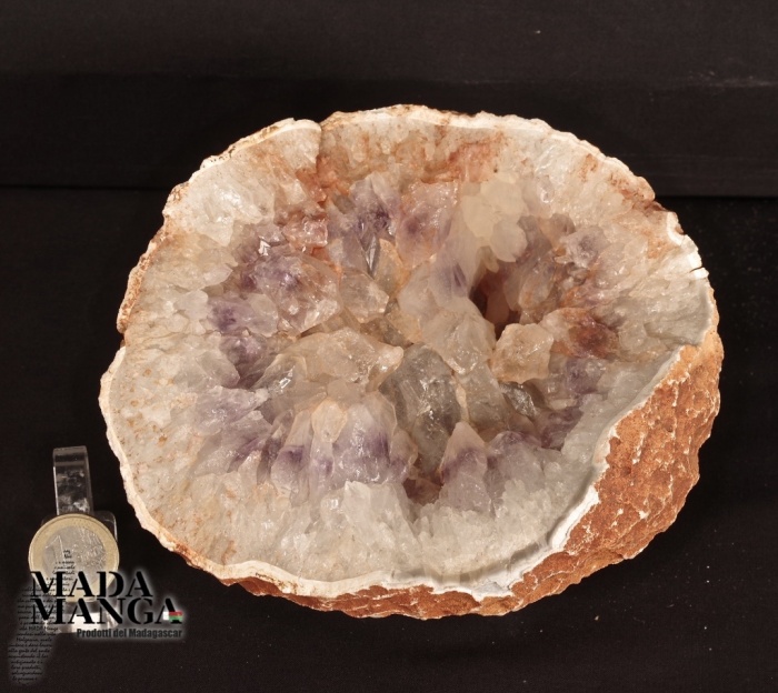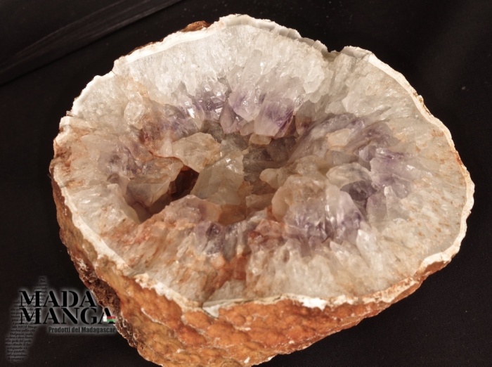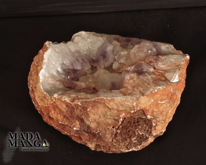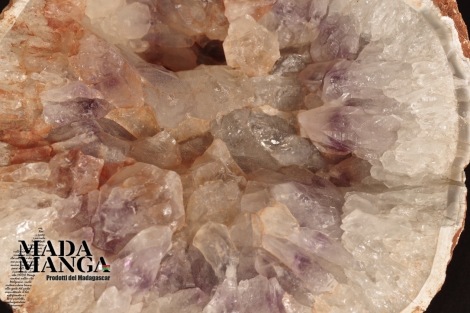 Geode di Quarzo Ametista con cristalli grandi con venature viola, provenienza Madagascar, dimensioni cm.16x13,8x8,4, peso 2100 grammi.