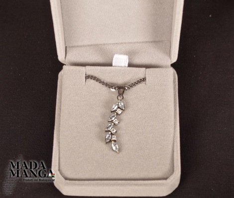 Ciondolo in Argento 925 rodiato con rodio nero con dieci topazi, dimensioni cm.0,6x4H gancio incluso.