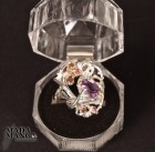 Anello in Argento 925 con placcature in oro giallo, con Ametista da mm.7x9 e piccole tormaline rosa.