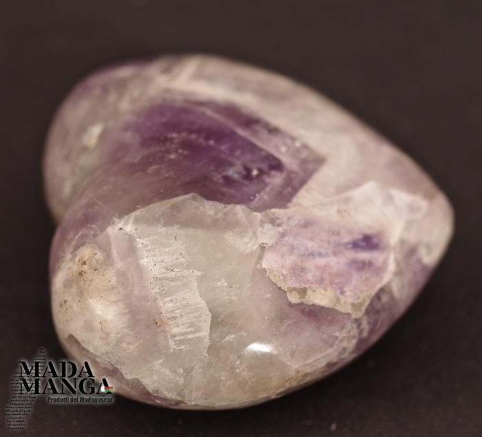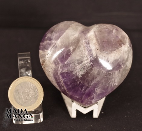 Cuore in Ametista, realizzato a mano, dimensioni cm.6,2x5,5H, peso 145,7 grammi, provenienza Madagascar.