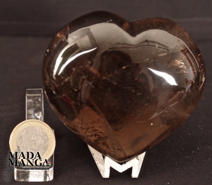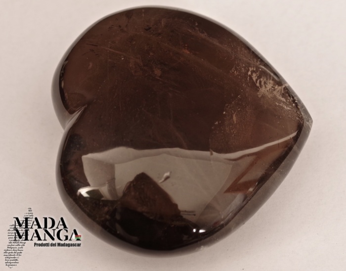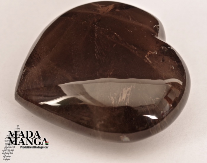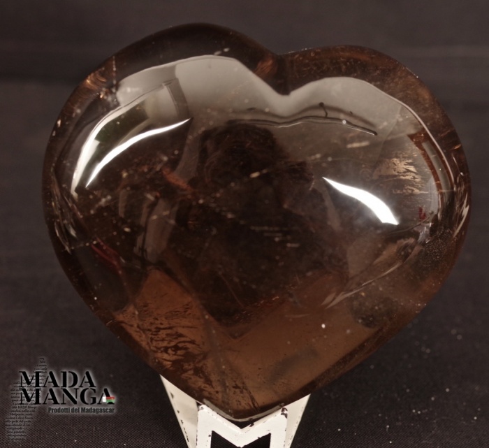 Cuore in quarzo fumè di primissima qualità, realizzato a mano, dimensioni cm.8,1x7,4H, peso 276,5 grammi, provenienza Madagascar.