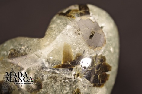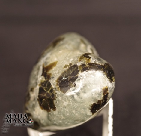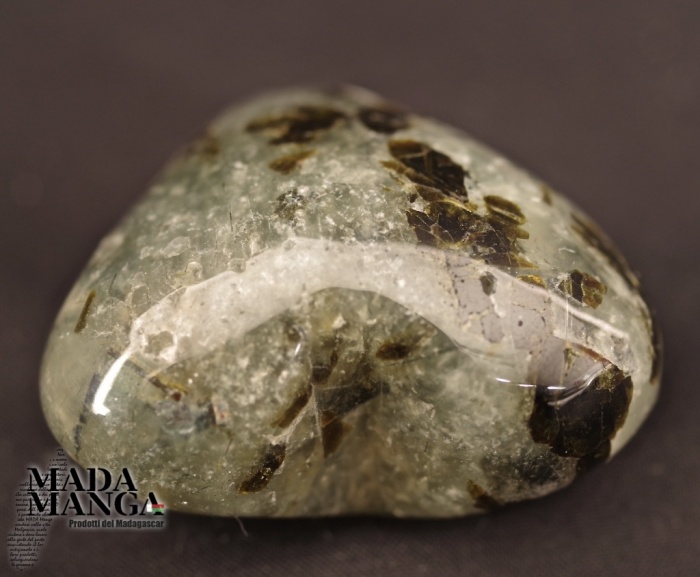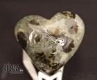 Cuore in Prehnite con inclusioni di Epidoto, realizzato a mano, dimensioni cm.5,1x4,5H, peso 99 grammi.