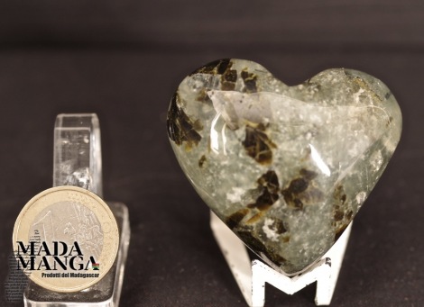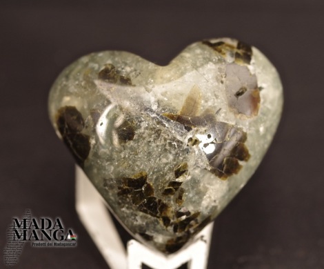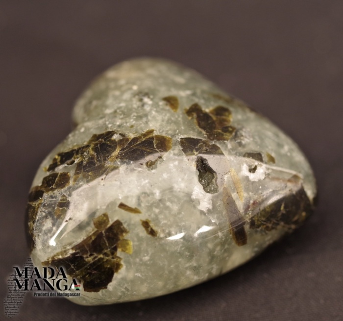Cuore in Prehnite con inclusioni di Epidoto, realizzato a mano, dimensioni cm.5,1x4,5H, peso 99 grammi. La confezione regalo consiste in sacchettino in tulle e scatolina in carta antemoro.