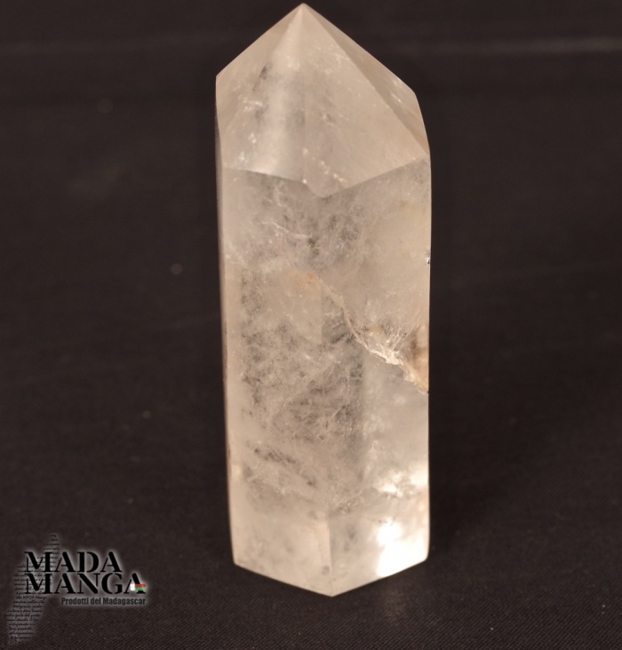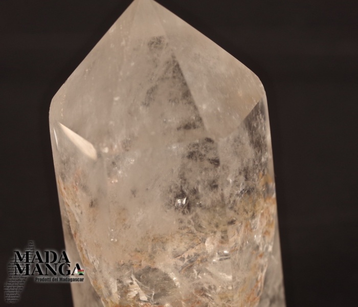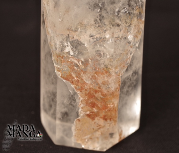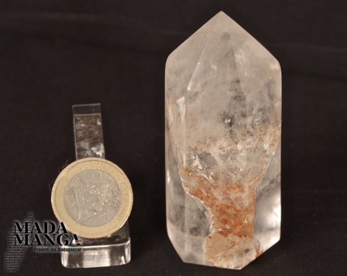 Prisma di Quarzo Ialino con inclusioni ematoidi e di bella trasparenza, dimensioni cm.2,5x3,3x7,6H, peso 110 grammi. Provenienza Madagascar.