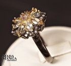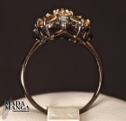 Anello in Argento 925, rodiato con rodio nero e con placcature in oro giallo, con Tormalina rosa al centro, citrini da mm.6x3 e topazi.