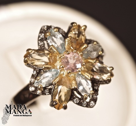 Anello in Argento con Tormalina, citrini e topazi