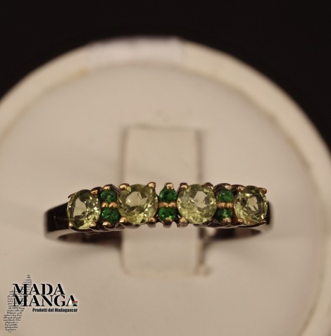 Anello in Argento con Peridoti e Cromo diopsidi