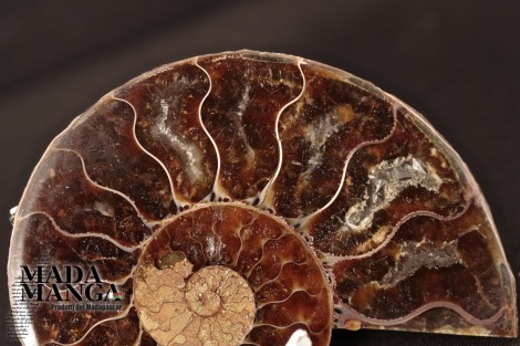 Ammonite tagliata e lucidata, bellissima definizione delle crescite, guscio intatto con bei riflessi, dimensioni cm.6x4,5x1,7 spessore, peso 69 grammi. Provenienza Madagascar.