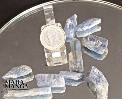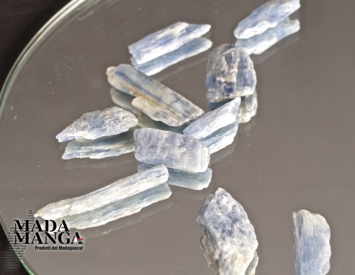 Cianite (o kyanite), dimensioni medie pezzo lung. da cm.1,8 a cm.3,8. Peso medio da 2 a 3,5 grammi.