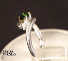 Anello in Argento 925 con placcature in oro giallo, con cromo diopside da mm.6x4 e piccoli peridoti.