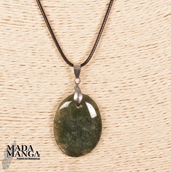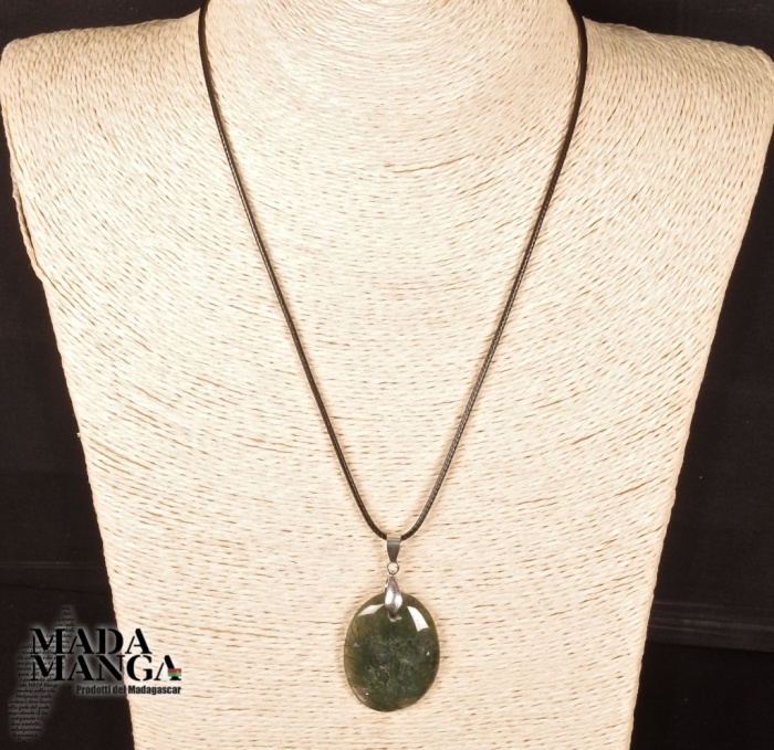 Ciondolo in Quarzo con Clorite, provenienza Madagascar, dimensioni mm.2,6x3,5H, peso 7,1 grammi, venduto con laccetto in corda cerata. La confezione regalo consiste in scatola in carta antemoro e sacchetto in tulle.