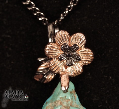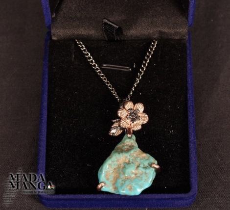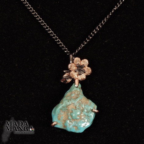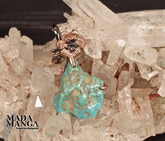 Ciondolo in Argento 925 rodiato con rodio nero con placcature in oro rosa con turchese da mm.23x23, dimensioni cm.2,5x4H gancio incluso, peso 8,7 grammi. In omaggio catenina in acciaio brunito. Venduto con scatolina regalo.
