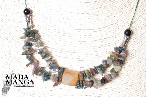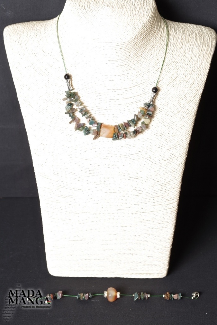 Collana con braccialetto in Agata nera, Corniola, e Diaspro, lunghezza collana cm.37, lunghezza braccialetto cm.18.