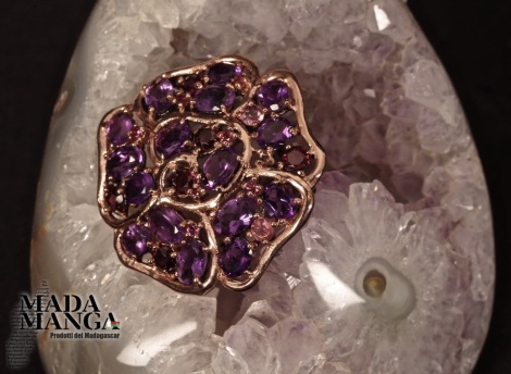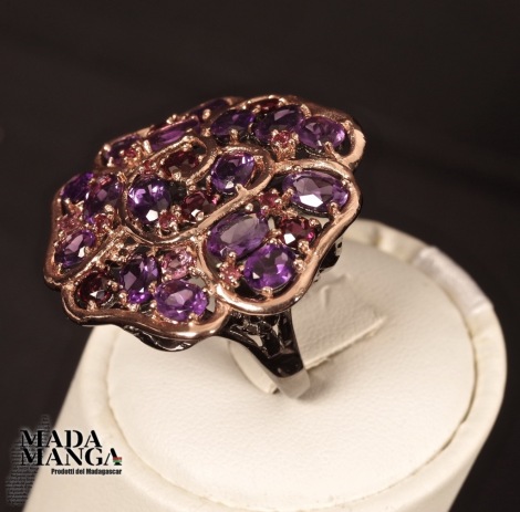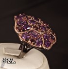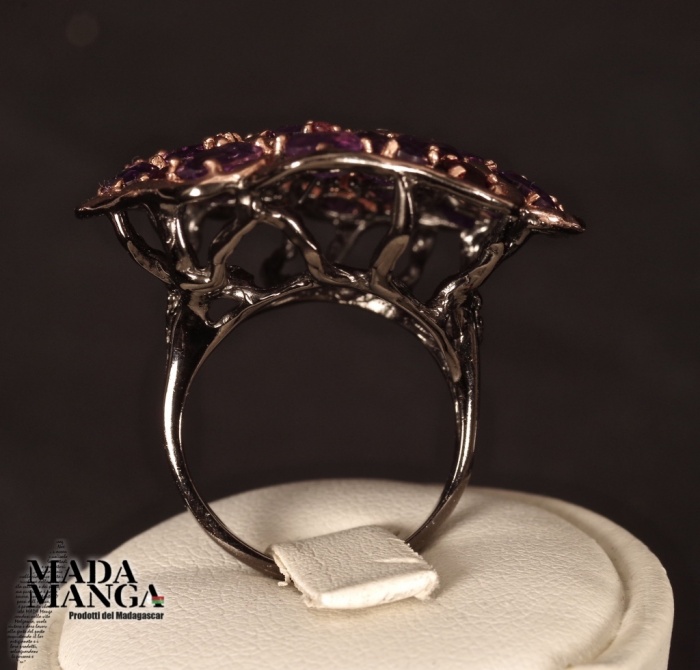 Bellissimo Anello in Argento 925 rodiato con rodio nero e placcato oro rosa, con Ametiste e Tormaline.